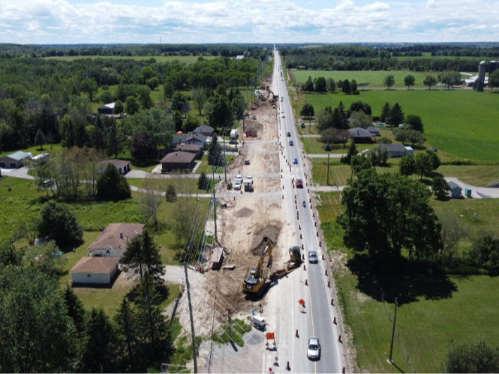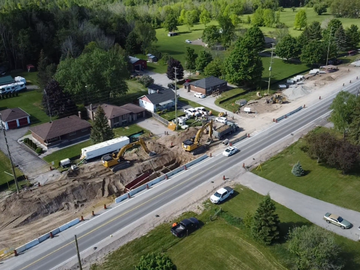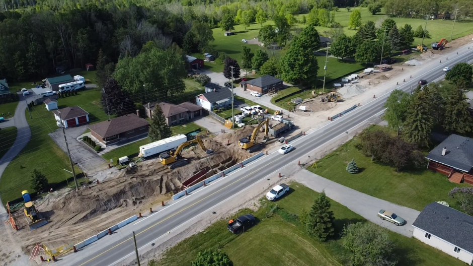 To meet the water supply and municipal sanitary sewage needs of the Innisfil Heights economic district as identified in the Town’s 2023 Master Servicing Plan update, InnServices is working in conjunction with the County of Simcoe on the Reconstruction of Innisfil Beach Rd (County Road 21) Project. Sanitary sewer, as well as water main, is being installed from the east limits of the Innisfil Town Hall Building continuing easterly approximately 2.0 Kilometers. The project is a continuation of the County Rd 21 Reconstruction project that began in 2019 which also includes widening of the road to four lanes, and the addition of storm sewers.