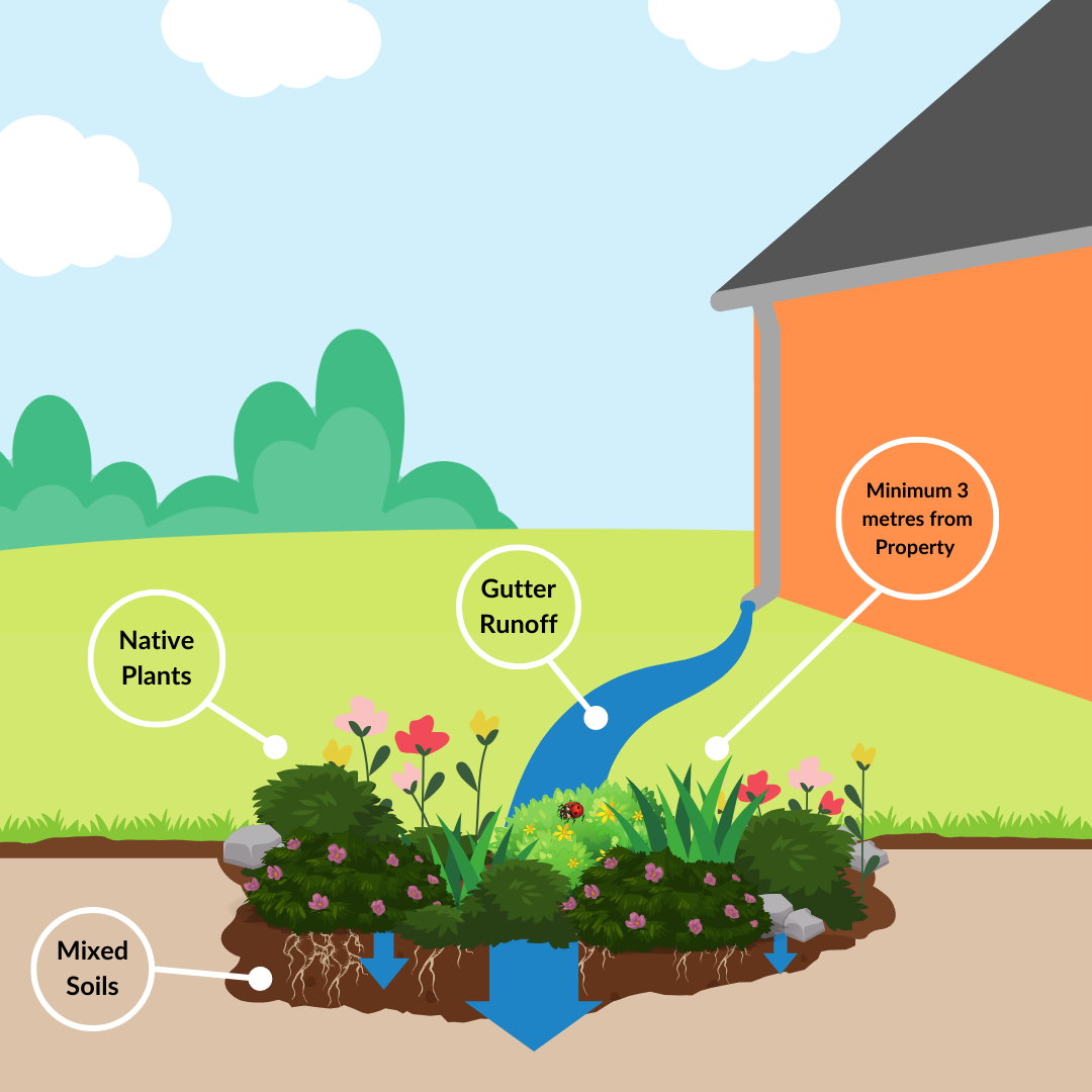 Combining both beauty and function, rain gardens help protect water by soaking up rain and filtering dirt and pollutants before they reach lakes and rivers.
