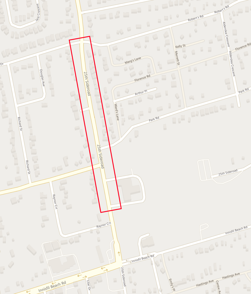 Impacted Area: 25th Sideroad (from the Water Treatment Plant at 2152 25th Sideroad to Roberts Rd). See map below.