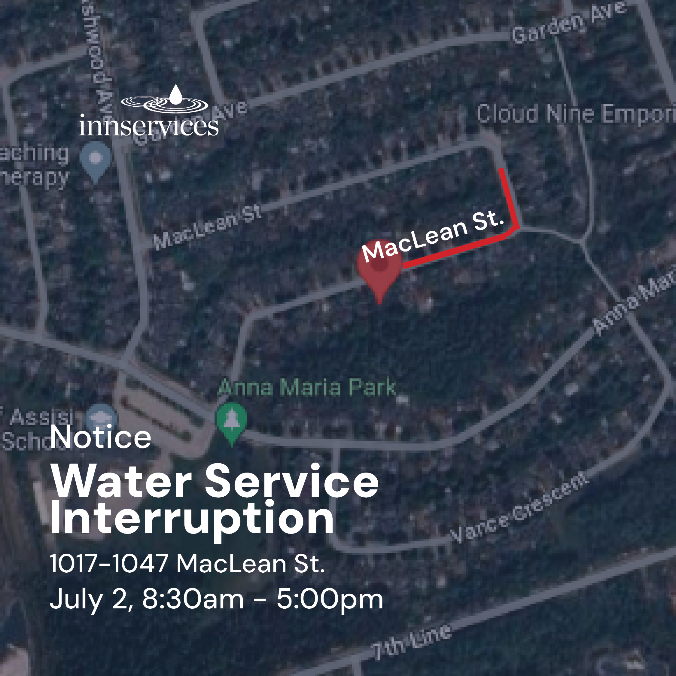 On Tuesday, July 2, there will be a service interruption to water services at 1017-1047 Maclean St. for approximately 8 and a half hours.