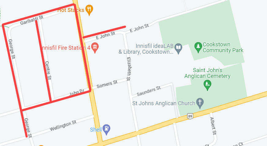 Due to a watermain break requiring necessary repairs, there will be an interruption to the water service in Cookstown in the area of Centre St, Garibaldi St, King St, East John St, George St and John Dr. Impacted residents have been notified. The repairs are expected to begin at 12:30pm with an estimated completion time of 5pm.